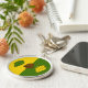 "Por pálida ou e vert, em xadrez uma bolota invertida adequada entre duas folhas de carvalho trocadas."