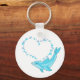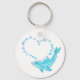 Tema da vida marinha/oceano, golfinho azul giro com bolhas criando forma cardíaca.