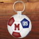Esta equipe colorido o teclado do futebol apresenta a palavra "gol" com a silhueta sobre a qual uma jogadora de futebol fêmea chutando uma pequena bola de futebol mais o nome de atleta, escola/clube e nome de mascote e ano na frente e o monograma do jogador ou letra de varsidade e número de camisa no verso - o fundo na frente e no verso é a imagem realista de uma bola de futebol que tem marrom, azul e branco atz_d_zynes