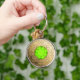 Um trompe-l'oeil, 3-d, gema peridot em um fundo metálico dourado, com padrão damasco - arte digital multimídia