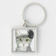 Esta impressão de aquarela apresenta um gato de mesa adornado com rendas e penas|