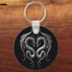 Dois dragões tribais prateados se enfrentam nesta agressiva design simétrica. As serpentes aladas têm a aparência de serem lançadas a partir de ferro sólido, o que cria uma aparência 3D espantosa. Os dragões se sentam sobre um fundo preto puro criando um contraste impressionante. A textura metálica e a cor prateada profunda dão a esta chaveiro um aspecto na moda.