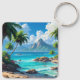 Dream On, tropical beach surrounded by beautiful palm trees, golden sand, and deep blue water.