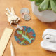 Vibrante e groovy gecko sobe em uma laranjeira contra um céu turquesa. A imagem é cheia de elementos mosaicos, e todo o original de 18" x 24" foi criado com aquarelas e tinta. Sombreamento sutil e elementos de brilho dourado 3D fazem com que este pequeno pop! Divertido e engraçado!
