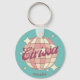 Eivissa Ibiza España Isla de España, Espanha, Retro Vintage Design com uma bola de disco a rosa e matizes de pêssego de damasco. Esta bela chaveiro é um presente, lembrança ou acessório perfeito para residentes de Eivissa Ibiza, visitantes, turistas ou fãs.