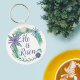 Ele é Risen. Uma bela chaveiro religiosa Páscoa com uma bela coroa floral de roxo e verde. Estas lindas flores aquáticas se regozijam com Jesus Cristo. Bonito presente cristão.