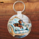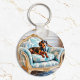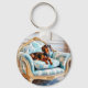 Este chic e divertido anel de teclas apresenta um dachshund real relaxando em uma poltrona luxuosa. O sofisticado canino está desfrutando claramente das coisas mais finas na vida, que podem muito bem atingir um acorde com alguns donos do amoroso doxie, ou cão de salsicha. Personalize o anel-chave no verso com o seu monograma inicial como na moda. Um presente ideal para amantes de cães.