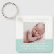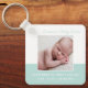 Bem-vindo, bebê. Um clássico presente de chaveiro de anúncio de nascimento de um bebê em chic teal com uma bela tipografia cursiva acima da sua doce fotografia de recém-nascido. Personalize a corrente principal presente com sua foto favorita da sua nova criança para dar a novos avós ou pais.