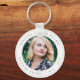 Chaveiro moderno e simples de fotografia para celebrar a vida do seu amado num estilo moderno minimalista elegante de design. A design de modelo pode ser facilmente personalizada com sua própria foto e texto para criar uma homenagem especial a seu ente querido ou como parte de seu funeral, memorial ou celebração da vida. A imagem mostrada é apenas para fins de ilustração para ser substituída pela sua própria foto. A imagem marcante é de uma bela mulher com cabelo loiro curto vestindo um topo floral botânico.