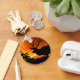Um alce fica em cima de uma colina como um incêndio selvagem se estende atrás dele. A silhueta dele se destaca nitidamente contra o fogo no fundo. Computação de Kathie Miller.