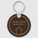 Este chaveiro de realtor é personalizado com o nome da sua empresa real sob o nome do agente na tipografia quic. Esta cadeia de teclas marrom e branco minimalista apresenta um desenho simples de uma casa. Presente contemporâneo para um agente que trabalha para ajudá-lo a comprar de uma casa.