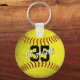 Este chaveiro de softball feminino tem a aparência de um softball sujo que passou por algumas práticas e apresenta um gráfico amarelo de softball com uma textura digitalmente criada granulada e um nome de escola e nome mascote facilmente personalizáveis mais o nome e número de camisa do jogador de softball em preto - por katz_d_zynes