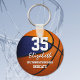 Este chaveiro personalizado de basquete para meninas ou meninos apresenta a imagem realista de uma bola de basquete que tem dois painéis coloridos - um azul e um laranja - facilmente personalizados com o nome do jogador & número de camisa, além do nome da escola e nome do mascote - por katz_d_zynes