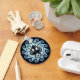 Uma ilustração mínima de um polvo dentro de um tradicional padrão circular grego antigo que forma um antigo escudo grego. A cor azul simboliza o elemento da água.