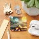 Uma espaçonave de uma espécie de ave que pousou em um mundo estranho com sóis-de-árvore no céu cada um de tamanho e intensidade diferentes, eles são azul, amarelo e vermelho. Por martinspixs