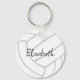 Este chaveiro de vôlei para raparigas apresenta um gráfico simples de vôlei com painéis brancos e "costuras" de cinza - o nome do voleibol é personalizável - por katz_d_zynes