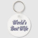Corda chave com a melhor esposa do mundo em texto de cinza azul 3D. Correntes de chave redondas e quadradas disponíveis em vários tamanhos.