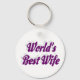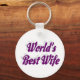 Corda chave com a melhor esposa do mundo em texto roxo 3D. Correntes de chave redondas e quadradas disponíveis em vários tamanhos.