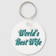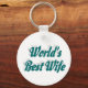 Corda chave com a melhor esposa do mundo em texto azul-esverdeado 3D. Correntes de chave redondas e quadradas disponíveis em vários tamanhos.