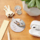 Vista frontal de um esquilo em um tronco de árvore, olhando hetero para você. Um animal engraçado e curioso. O esquilo simboliza a praticidade, a necessidade de fazer provisões preliminares. Chaveiro. Você pode alterar ou excluir a imagem e o texto do modelo.