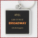 Adorável chaveiro anunciando uma estrela ascensão! Procure-me na Broadway - com "BROADWAY" feito em fontes de luz da Broadway. Personalizar com o nome do destinatário. Cortina!