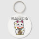 O Maneki Neko com as palavras, "Eu acredito" no topo.