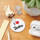 design "I Love" com um coração vermelho brilhante e uma fonte grande e ousada.