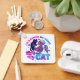 Design vibrante e colorido com um esqueleto segurando um gato. O texto colorido diz: "Eu teria preferencialmentes em casa com meu gato". Esse design está disponível em uma grande variedade de produtos.