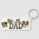 No meio desta chaveiro, há o texto: Eu te amo Pai, onde as primeiras palavras são escritas com uma bela fonte caligráfica, com pernas arabescas. Abaixo, o Pai é escrito em letras grandes com textura de madeira e reflexo no chão. Este é um símbolo para a força e proteção de um pai. Em segundo plano, 4 fotos permitem lembrar as memórias dos seus melhores momentos com seu Pai. Um belo e sincero aplauso para desejar um Feliz Dia do Pai!
