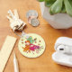 Uma fada bonito do jardim com cabelo alaranjado de fluxo e um vestido cor-de-rosa senta-se em um cogumelo cercado por estrelas douradas em t-shirt feericamente do jardim, babadores, coberturas, cartões, as bolsas, canecas, etiquetas, lembranças, travesseiros, pulsos de disparo de parede, e muito mais.