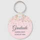 Chaveiro de graduação moderna e elegante com um confete dourado e um fundo rosa pálido e branco. Você pode personalizá-lo com seu próprio texto, nome do cheio do formando e ano de graduação. Você pode até alterar a cor do texto e o estilo da fonte usando a opção personalizar.