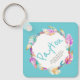 Watercolor native tribal boho feather and beads wreath personalized girls keychain. Personalize with your own name and name meaning. Currently reads Payton, Country warrior. Strong, determined & fortuitous. Pretty decorative art on a aqua background color which can be changed if required. Ideal for a free-spirited girl. © Original watercolor feather and bead art and design by Sarah Trett for www.mylittleeden.com and namesense on Zazzle.