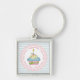 Chaveiro Feliz aniversário Cupcakes Blue Stripes com rosa