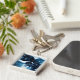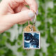 Padrão original de Natal de bolas e fitas azuis, efeito de pintura