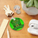 Um Chapéu verde com um Balde brilhante e colorido com um fundo verde que está em um CHAVEIRO.
