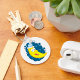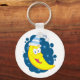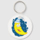 Um rosto amarelo feliz vestindo um chapéu azul e branco. Esta design parece realmente eficaz nestes Chaveiro