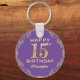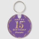 15 Festa de aniversário Roxo e Chaveiro de quadro Glitter Dourado. Para mais personalização, clique no botão "Personalizar" e use nossa ferramenta de design para modificar este modelo.
