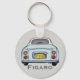 Pale Aqua Figaro Car Custom Keyring - com fundo de efeito de couro cinza e prato FIG reg personalizável (iniciais - 3 letras máx.) e texto Figaro.