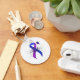 Fita azul e púrpura com borboleta, círculos e comutação. A fita azul e púrpura representa Artrite Reumatoide e Acidente Pediátrico. O Mês de Sensibilização por Curso Pediátrico e a Artrite | Mês de Consciência da Artrite Reumatoide.