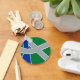 Chaveiro com um design com a bandeira de Albany, Oregon. Uma bandeira verde, cinza e azul