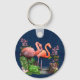 Chaveiro Flamingos rosa no Tecido azul clássico