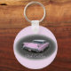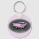 A obra de arte de um Cadillac clássico rosa de 1950, a partir da parte de trás, mostrando as asas clássicas e icônicas que o clássico carro americano é bem conhecido e amado.