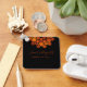 A chaveiro de casamento escura e dramática apresenta uma flor metálica moderna de cobre-áspera com texto personalizável sobre fundo preto.
