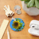 Girassol em cheio floresce com folhas verdes e céu azul em fundo.