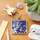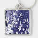 Flores brancas e folhas de características deste design em um fundo azul do grunge.