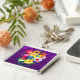 Arte abstrato de aquarelas. Árvore floral colorida do arco-íris. Design divertido. Fundo roxo.
