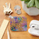 Flores pintadas em ouro sobre fundo de rosa, lilás, roxo e turquesa. Personalize com suas iniciais.