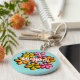 Botão personalizado de flores coloridas com desenho de tinta criado com marcadores e colorido digitalmente em cores brilhantes e nome personalizável. Design divertida com um espírito primavera.