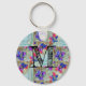 Chaveiro Flores roxas e azuis quadrados Zigzags