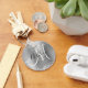 A cintura cintilante de prata cintilante se destaca nos bordos superior e inferior, sobre uma fina cinza de prata enrolada de metal escovado ou de aço inox. As cores principais são cinzas de prata, prata, preto e branco. A design personalizada do monograma apresenta um moderno combo elegante de caligrafia branca e preta. Aumente o tamanho da fonte conforme necessário para nomes mais curtos. Temos alguns estilos de fonte disponíveis, mas você pode escolher sua opção favorita para criar seus próprios favores de chaveiro para sua celebração especial. Verifique as opções de sobreposição de filtro para alterar as cores das imagens.